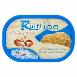Kulfi Ice is a brand bringing authentic Indian kulfi ice cream to UK supermarkets. Kulfi is a traditional South Asian frozen dessert, denser and creamier than regular ice cream, made by slow-cooking milk until reduced and then freezing. Kulfi Ice captures this authentic taste in convenient formats for British consumers. The Kulfi Ice range includes three classic flavours: Original Malai (the traditional cream flavour with real almonds and pistachios), Mango (sweet and fruity), and Pistachio (rich and nutty with real pistachios). Products are available as individual kulfi milk lollies in 5-packs perfect for sharing, and in 1-litre tubs for home dessert serving. Grocefully helps you compare Kulfi Ice prices across Asda, Iceland and other UK supermarkets. Whether you're looking for an authentic Indian dessert experience, want to try something different from regular ice cream, or are stocking up for a family gathering, find the best prices on Kulfi Ice frozen treats.
