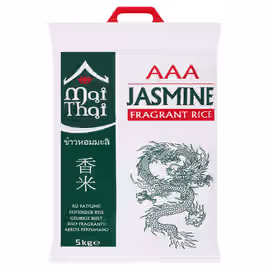 Mai Thai is a premium Thai rice brand specialising in authentic AAA grade jasmine fragrant rice, known in Thailand as Khao Dawk Mali or Hom Mali rice. Thai jasmine rice is renowned worldwide for its exceptional quality, featuring long, slender grains that cook to a slightly sticky texture with a distinctive sweet, floral aroma reminiscent of pandan leaves and popcorn. The AAA grading indicates the highest quality of Thai jasmine rice, with whole, unbroken grains that have been properly aged to develop optimal flavour and cooking properties. Mai Thai jasmine rice is the perfect choice for authentic Thai and Asian cuisine, complementing dishes from green curries and stir-fries to traditional Thai desserts. The fragrant rice pairs beautifully with the bold flavours of Thai cooking while also working well with Chinese, Vietnamese, and other Southeast Asian recipes. Naturally gluten-free and suitable for vegetarian and vegan diets, jasmine rice is a versatile store cupboard essential. Mai Thai rice is available at UK supermarkets in various pack sizes including convenient 2kg bags for regular home cooking. For the best results, rinse the rice before cooking to remove excess starch, and use slightly less water than regular long grain rice to achieve the perfect fluffy yet slightly sticky texture that authentic Thai jasmine rice is famous for.