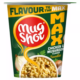 Mug Shot is the UK's favourite instant hot snack brand, made by Leeds-based Symington's - a company with over 190 years of food innovation experience. Each Mug Shot delivers tasty, satisfying pasta and noodles that are ready in just minutes with boiling water. The range includes classic pasta varieties like Creamy Cheese, Tomato & Herb, and Chicken & Sweetcorn, alongside noodle options in flavours such as Sweet & Sour and Curry. In late 2024, Mug Shot launched their new Max range featuring bold flavours aimed at younger consumers seeking convenient meals. Mug Shot Max pots offer four pasta flavours - Roast Chicken, Cheese & Broccoli, Mac & Cheese, and Sundried Tomato & Chorizo - plus Chicken & Mushroom noodles for maximum flavour in every pot. These larger portions are perfect for a quick lunch or satisfying snack. Whether you need a desk lunch, student budget meal, or quick snack at home, Mug Shot delivers convenience without compromising on taste. Available at all major UK supermarkets including Tesco, Sainsbury's, Asda, and convenience stores nationwide. Grocefully helps you compare Mug Shot prices across UK retailers to stock up on your favourite instant pasta and noodles at the best price.