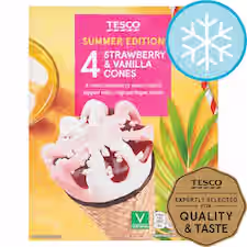 Tesco Strawberry & Vanilla Cones 4 X 110Ml